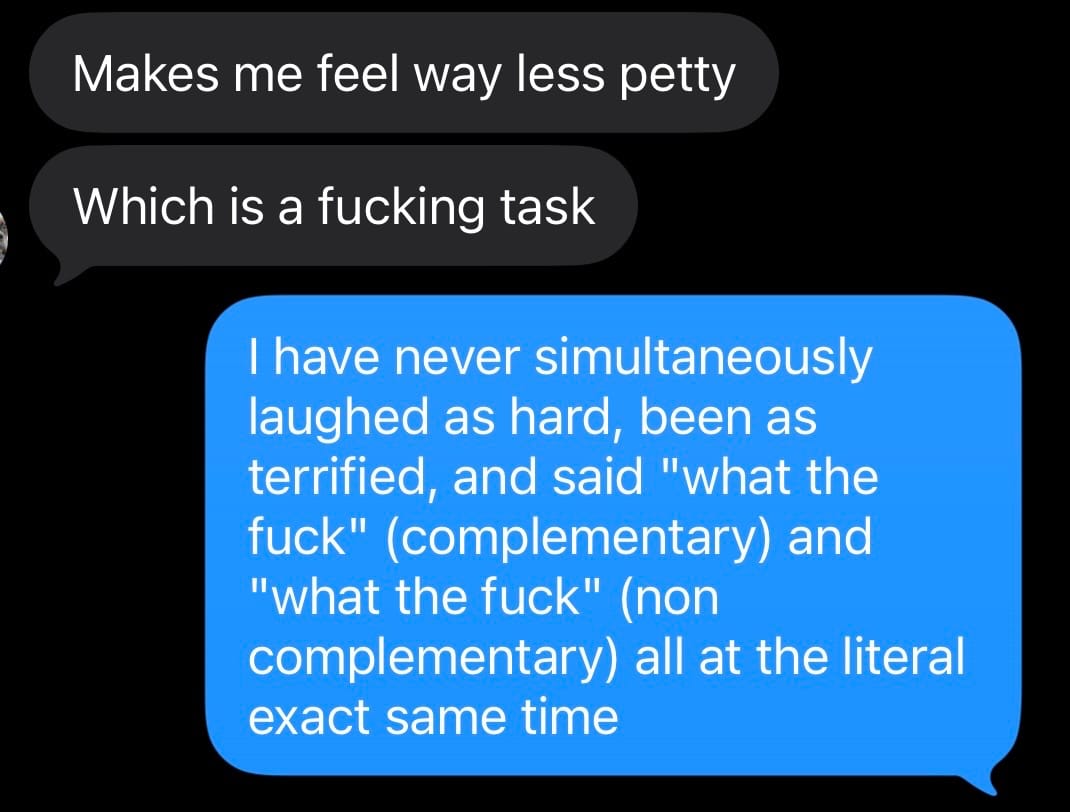 Also, started the first few episodes of the HBO show Neighbors and wow, that has been a wild ride. Curious if anyone else is watching yet besides my group chat which had the below to say.