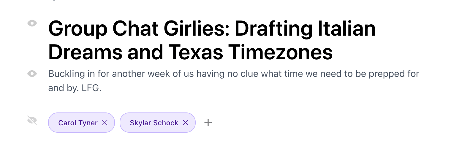We’re nearing our one-year anniversary of GCG, and it’s wild to think we’ve sent a weekly newsletter for almost eleven (11!!) straight months. There have been many nights in many time zones where we’ve done math that felt way harder than it should just to figure out when to press send.