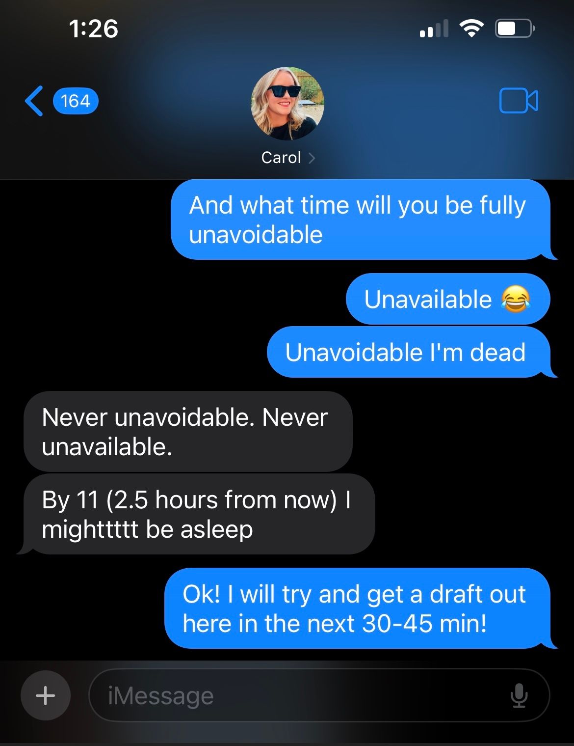 Spoiler alert - Skylar did not send that draft for another 1.5 hours.