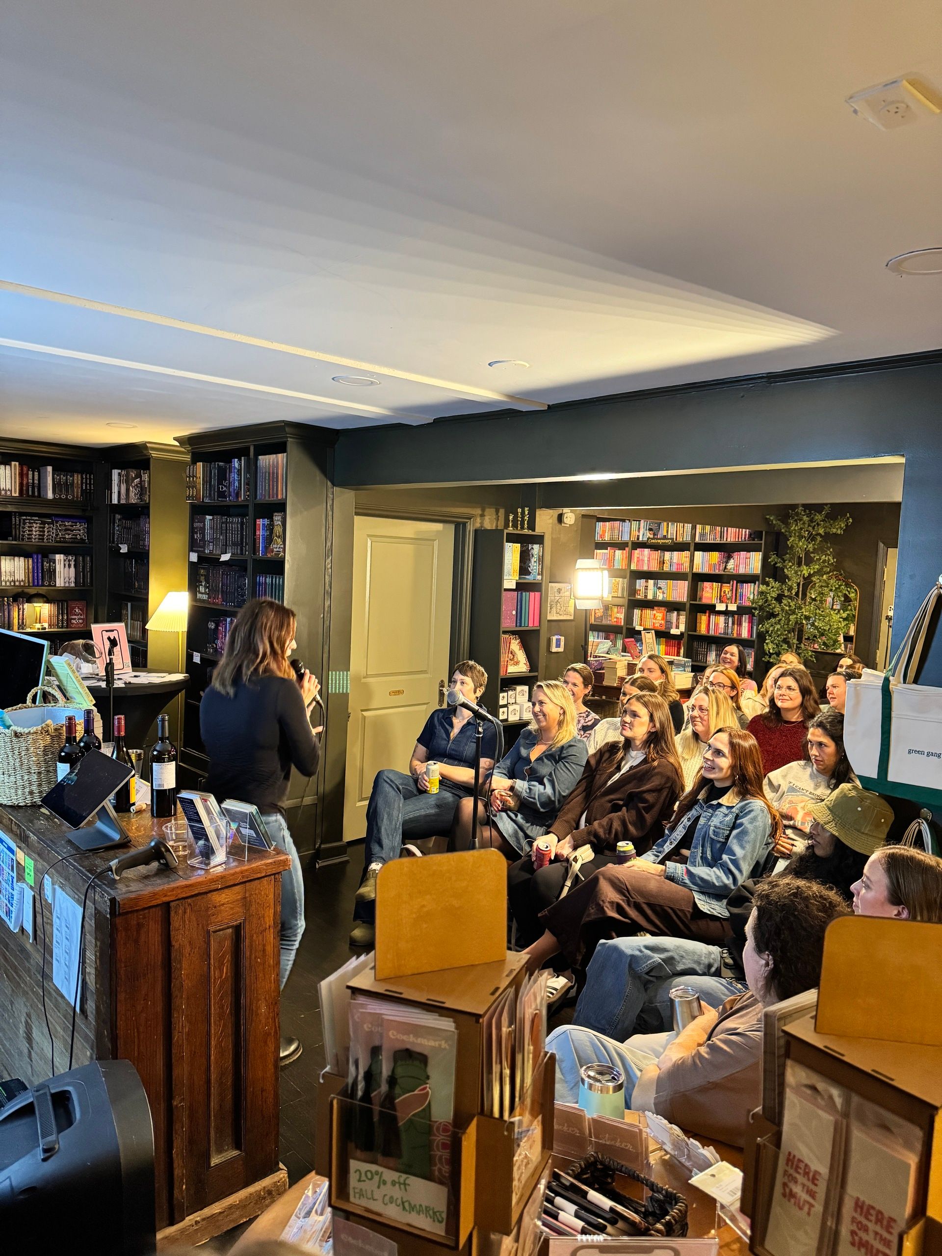 Katie Mitchell, owner of Trope came up to discuss all things romance novel recos. We learned about Shadow Daddies and that if you’re an audiobook lover try listening to anything narrated by Teddy Hamilton (but maybe don’t look him up 😬).