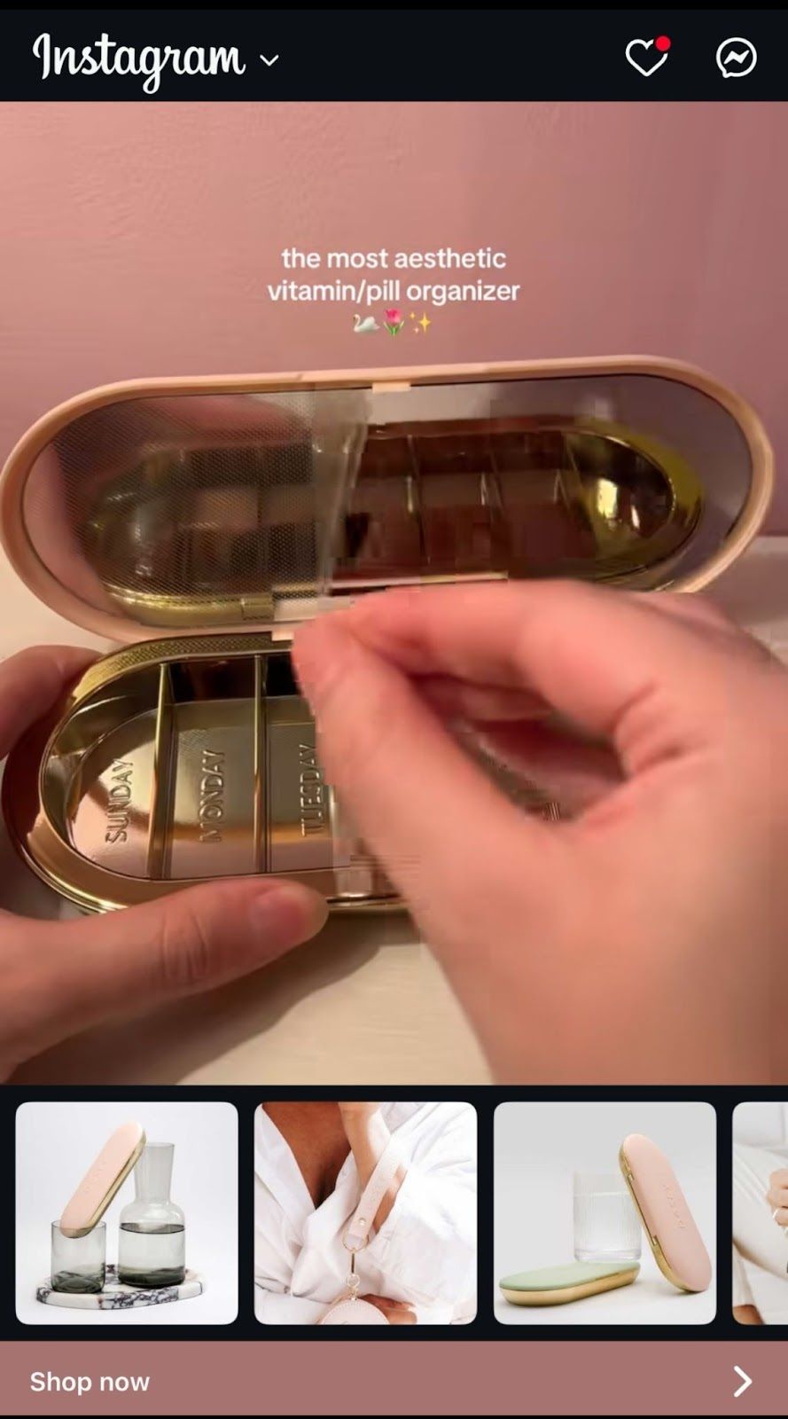 This week, a girlie got served an ad for a pill organizer that doubles as a wristlet.